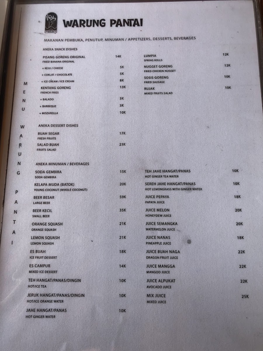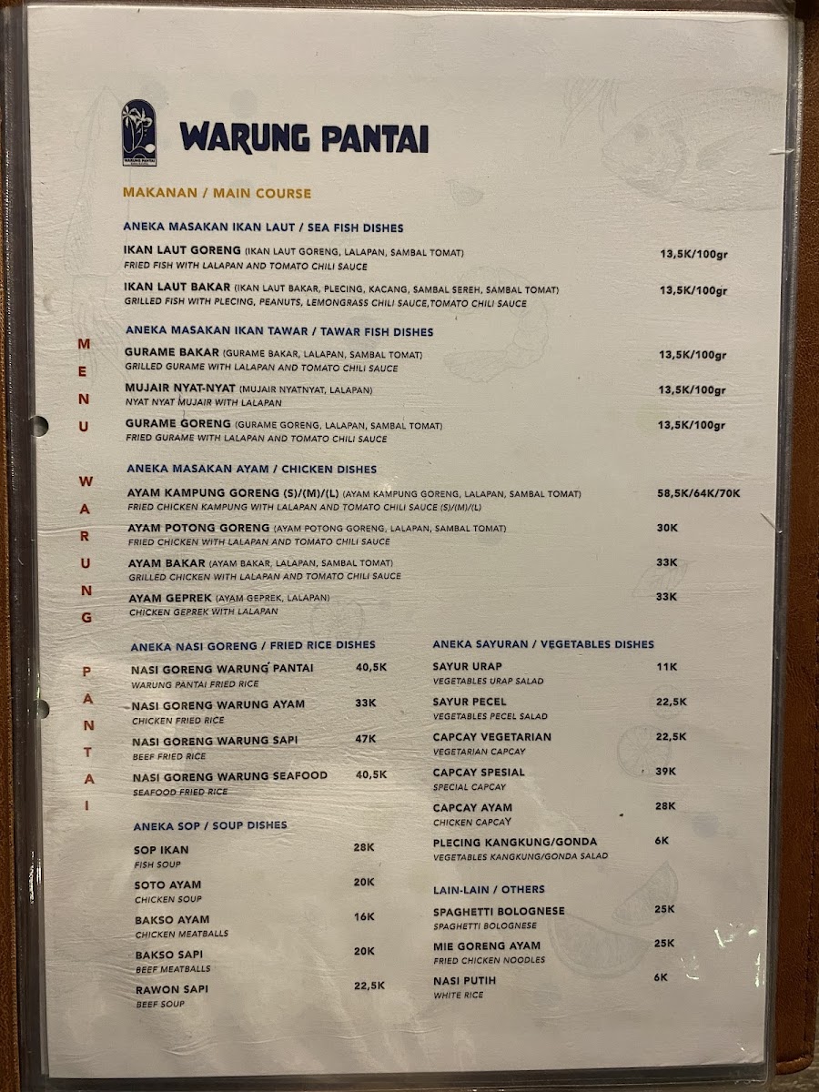 Introducing the Menu at Warung Pantai: Beach Restaurant & Rest Area